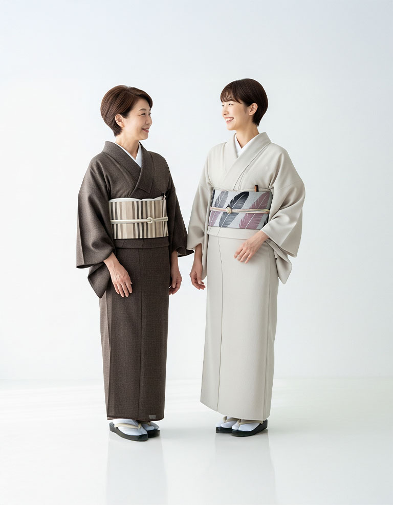 落ち着いた雰囲気の中で、ゆっくりと着付けの基礎を身につけていただけるグループレッスンです。